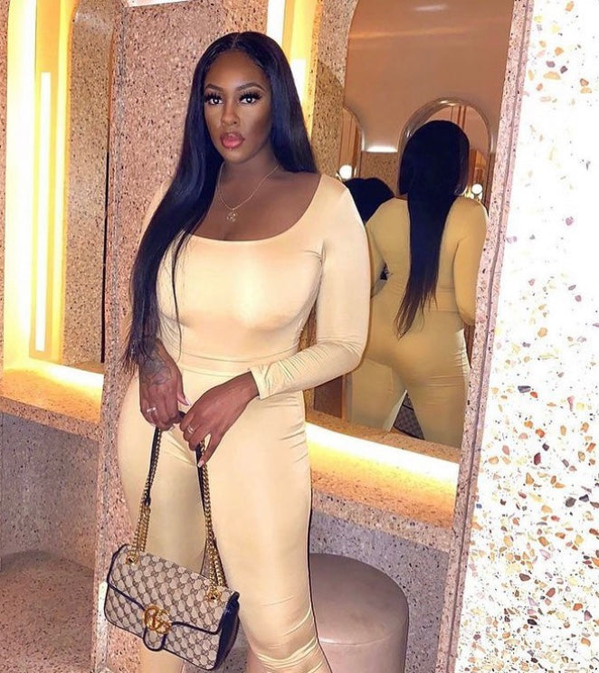 The top is a body suit. The material is stretchy.